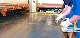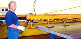 Zuführen der Tafelbleche mit Vakuum-Hebetechnik zum Zuschnitt